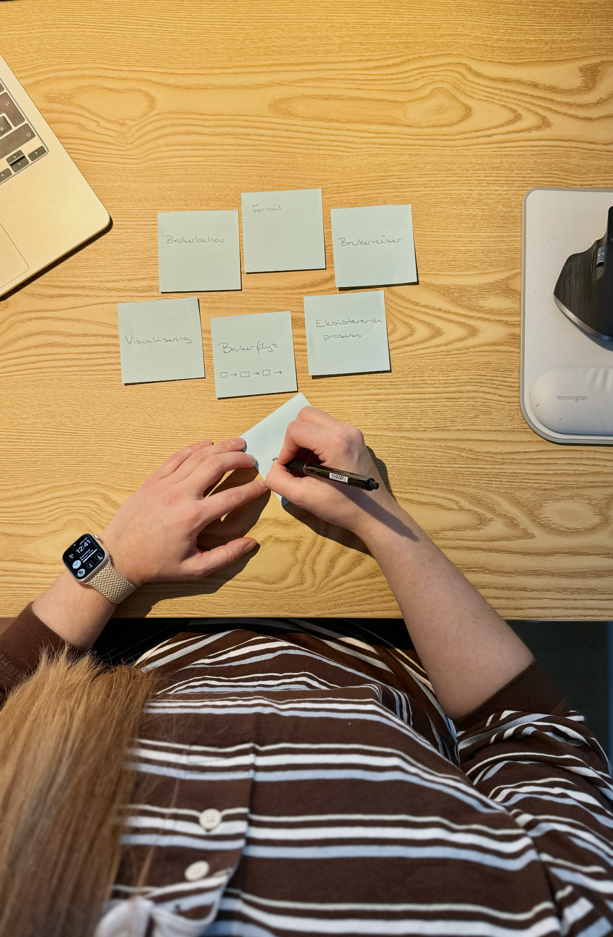 Jeg tar utgangspunkt i den sammenstilte informasjonen fra kartleggingen. Dette bruker jeg som grunnlag for idémyldring, som gjennomføres i form av en workshop. Målet er å tenke bredt og la ideene flyte fritt uten begrensninger. Så her er ingen ideer feil og alle forslagene har verdi for prosessen.